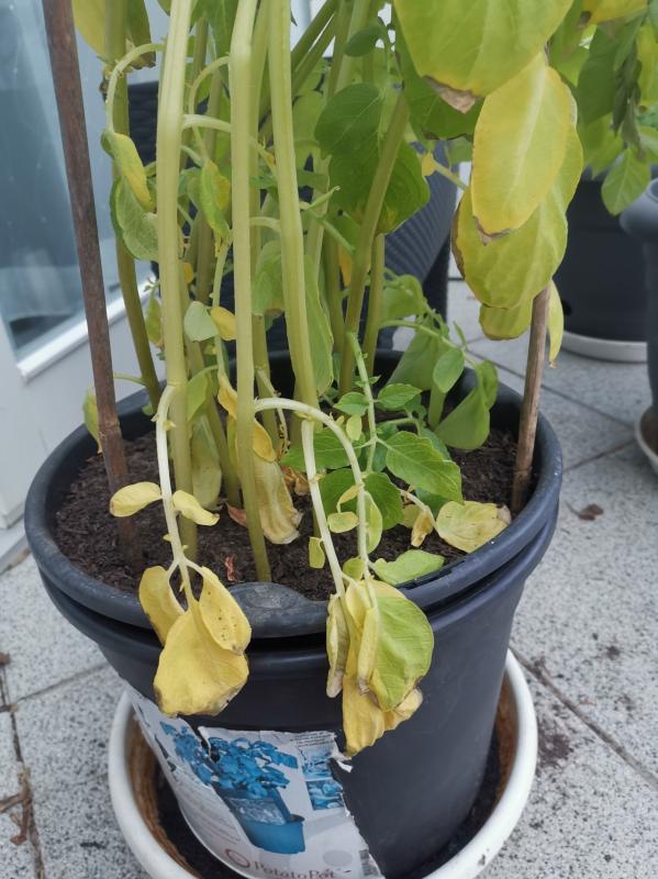 Die Blätter werden zunehmend gelb und beginnen, schlapp herumzuhängen, wie auf dem Bild zu sehen ist.