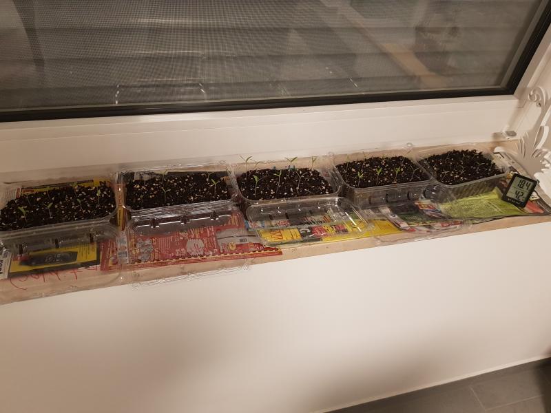 Hier ist auch Tetris angesagt, aber wenigstens können ein paar andere Gemüse demnächst ins Folienhaus(in ihren Töpfchen) und die erste Jungpflanzen werden diese Woche abgeholt. Ich topfe gerade sukzessive größer und die brauchen natürlich mehr Platz.