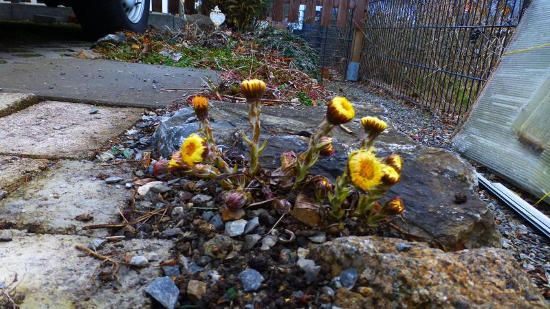 Ich habe es heute noch einmal mit Huflattich (Tussilago farfara) probiert