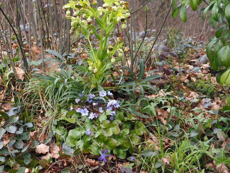 Um die Leberblümchen habe ich mich ja sehr bemüht. Unzählige auf den Balkanhügel gepflanzt und im waldigen Teil des Gartens verteilt. Das hat nicht geklappt. Weiß der Henker warum! Gut, ich gärtner auf dem Hang zum Galgenberg, den Henker gibts nicht mehr und die Leberblümchen zeigen es mir jetzt. Sämlinge tauchen auf dem Steilhang über dem Balkanhügel auf. Da werden sie so fett, wie sie sollen. Auf nacktem blankem Boden ohne Schutz gefällts ihnen.