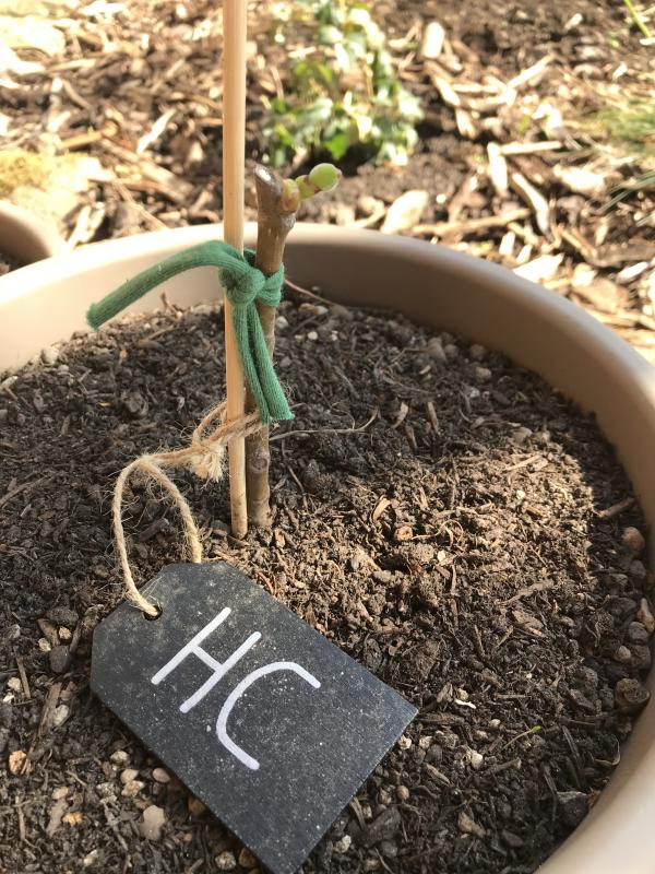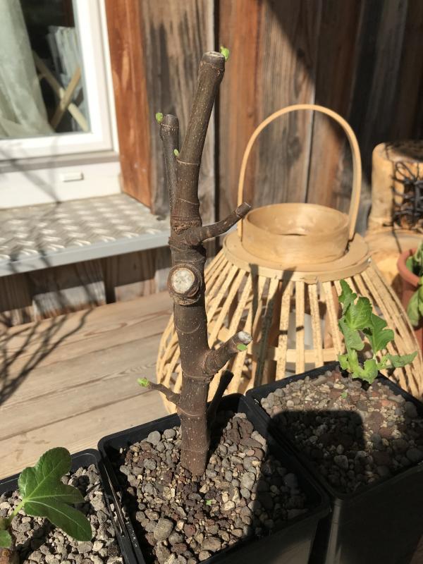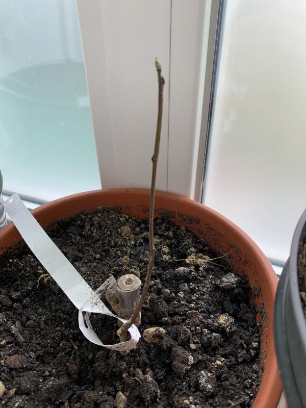 Ein Steckholz einer unbekannten, kompakt wachsenden violetten Feige.
