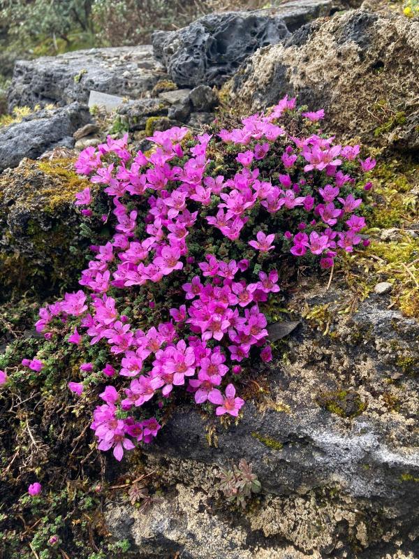 Der Saxifraga oppositifolia in Vancouver ist der "Theoden", schrieb mir mein Freund... der am besten im Tuffgestein wächst. Jegliche Versuche Stecklinge aus der Wildnis dauerhaft im Garten zu etablieren sind gescheitert. Dort "drüben" wächst S. oppositifolia erst ab einer Höhe von ca. 2000 Meter. Da fühlen sie sich im Tal wohl nicht so wohl. Also gut das wir auf verschiedene Kultivare zurückgreifen können.