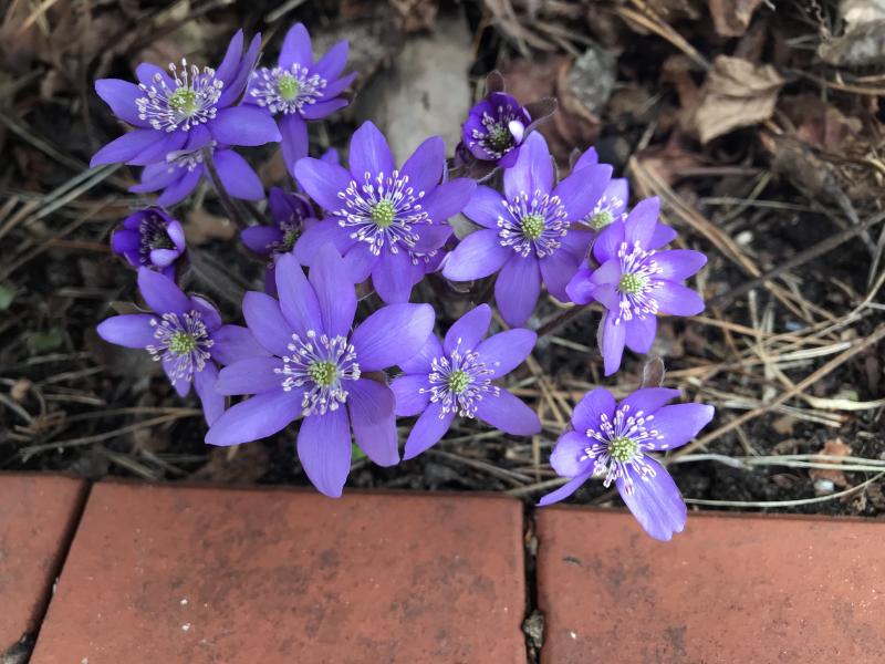 Heute haben sehr viele Hepatica geblüht, ich freue mich genauso über die normalen Sämlinge, die sich wie dieses dicht am Weg ihren Platz im Garten selbst gesucht haben.