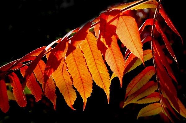 So und nun häng ich auch noch was Farbiges an, das Blatt eines Essigbaumes