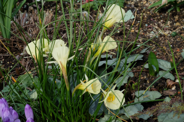 Bei meinen sitzen die Knospen noch tief im Laub. Eigentlich mag ich 'Mount Hood' gar nicht so gern, ich finde sie zu großblütig neben den zarteren Narzissensorten. Aber während andere Sorten nach und nach verschwinden (die vielgelobten 'February Gold' sind z.B. fast alle weg), ist 'Mount Hood' bisher sehr zuverlässig. ;D