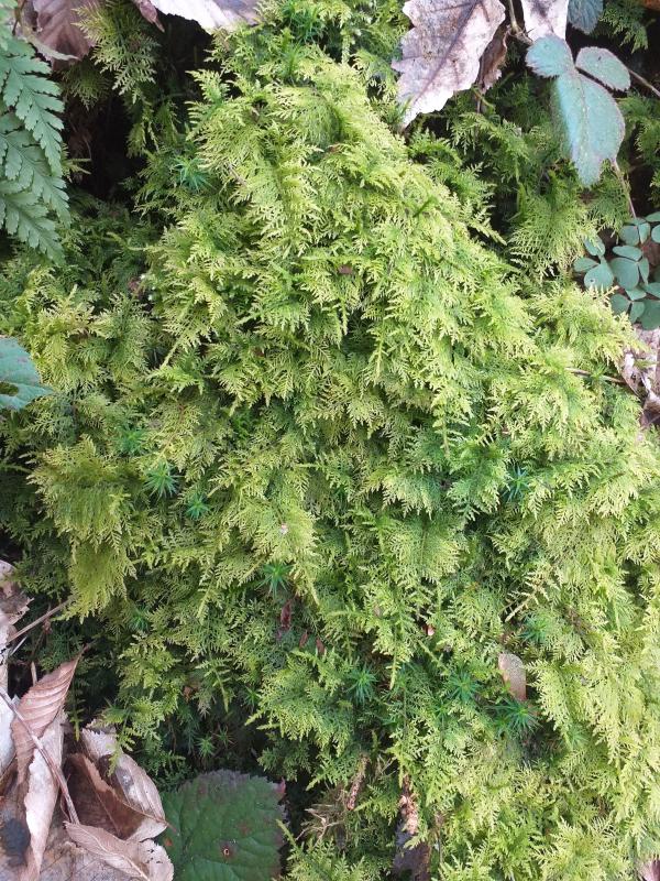 auf der letzten Wanderung im Westerwald habe ich in einem sehr feuchten Tal dieses wunderbare Moos gesehen. Weiß jemand, wie es heißt? Oben links im Bild Polystichum aculeatum.