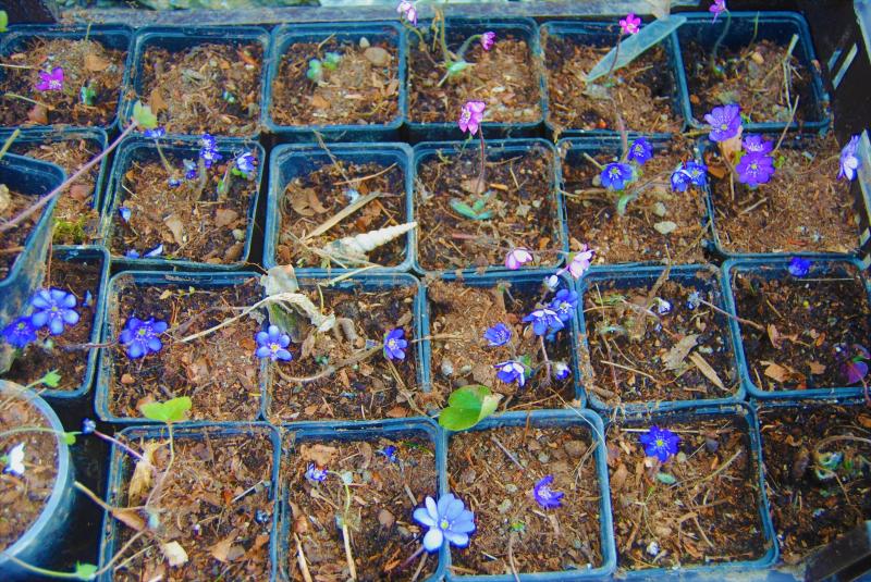 so, da lechze ich nach kräftig oder dunkel blauen Sorten und da ist so eine und blüht! Hepatica x media 'Blue Jewel' hatte ich vor Jahren von Andreas Kirschenlohr.
