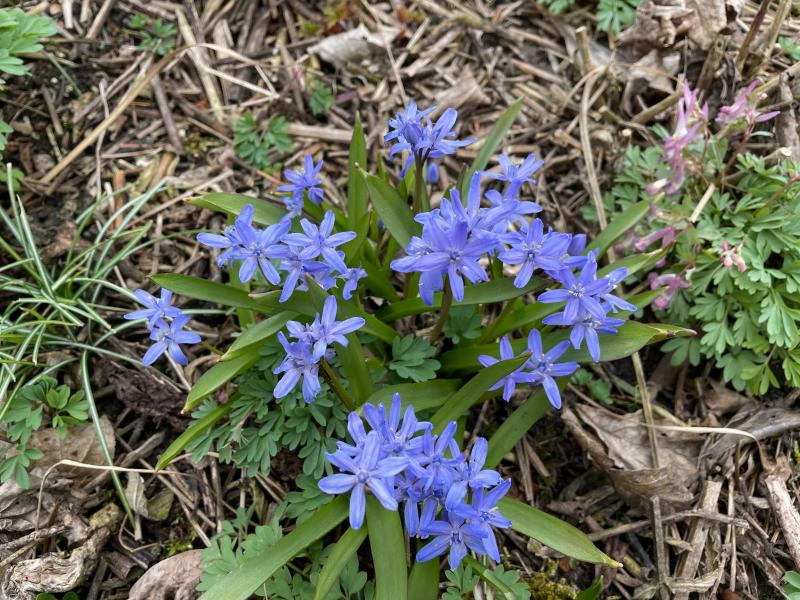 In meinem Steingarten beginnen jetzt die Puschkinien zu blühen, im weiteren Sinne vielleicht auch ein Blausternchen. Ich habe vor einigen Jahren einige wenige Zwiebeln in den Steingarten gepflanzt. Die Pflanze soll ja aus Gebirgen stammen. Inzwischen habe ich es bereut. Die Ausbreitung ist durch Sämlinge doch sehr stark.