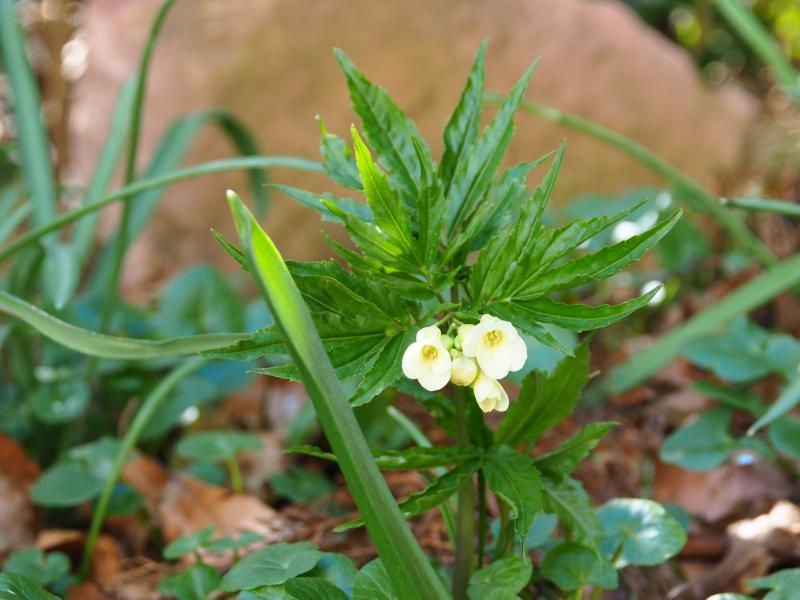 Cardamine quinquefolia beginnt hier auch zu blühen, zumindest der eine Klon.