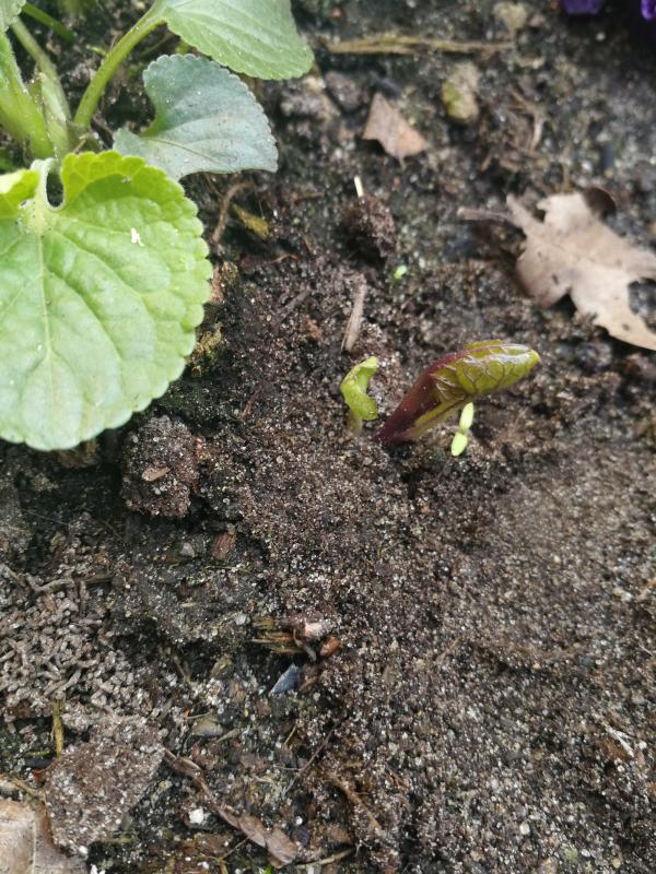 Gerade die ersten Hörnchen bei 'Sails Ho' gesichtet und erstaunlicherweise bei 2 winzigen Sämlingen von 'Tokyo Smog', aber lieber noch mal mit Laub und Nadeln abgedeckt. Angesichts des orakelten Frostes nächste Woche ist es ganz gut, dass die Hosta noch in Deckung bleiben.