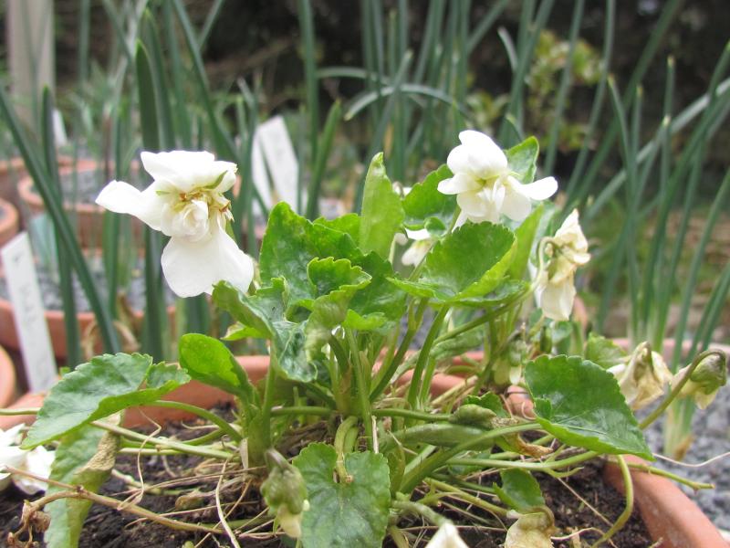 Viola suavis `Comte de Brazza´ blüht immer noch ein bisschen, dieses Jahr die am längsten durchhaltende Sorte. Ausgerechnet ein Parmaveilchen, die hier bisher sehr verhalten (um nicht "gar nicht" zu sagen) bei der Sache waren.