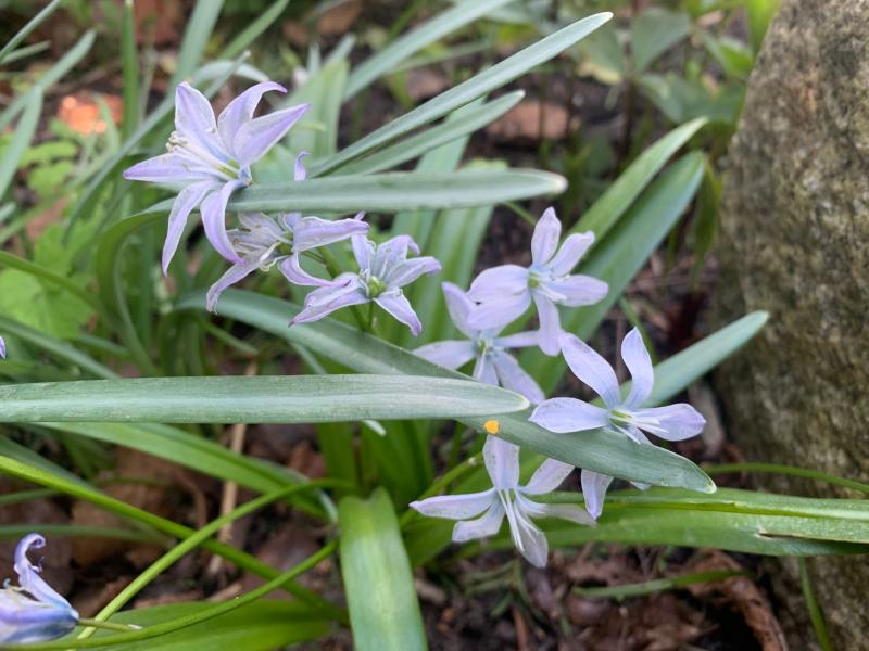 In meinem Steingarten beginnen jetzt die Puschkinien zu blühen, im weiteren Sinne vielleicht auch ein Blausternchen. Ich habe vor einigen Jahren einige wenige Zwiebeln in den Steingarten gepflanzt. Die Pflanze soll ja aus Gebirgen stammen. Inzwischen habe ich es bereut. Die Ausbreitung ist durch Sämlinge doch sehr stark.