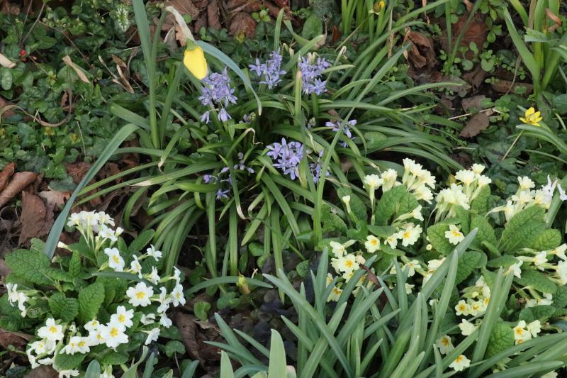 In meinem Steingarten beginnen jetzt die Puschkinien zu blühen, im weiteren Sinne vielleicht auch ein Blausternchen. Ich habe vor einigen Jahren einige wenige Zwiebeln in den Steingarten gepflanzt. Die Pflanze soll ja aus Gebirgen stammen. Inzwischen habe ich es bereut. Die Ausbreitung ist durch Sämlinge doch sehr stark.