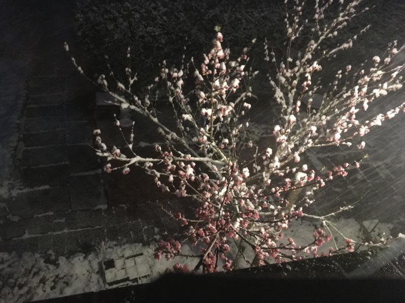 Hier ein kleiner Eindruck des hiesigen Wetters:Pfirsich im Schnee