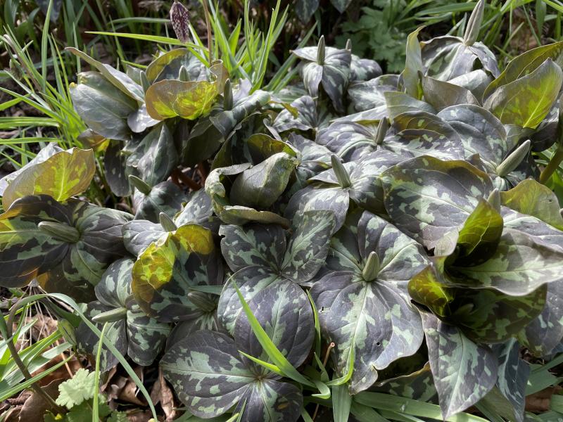 toll! Und es ist diese Art mit diesen schwarzroten Blüten und dem sehr heftig gesprenkelten Laub!