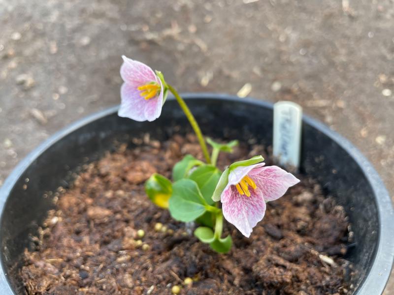 Trillium rivale blüht für das erste Mal, Aussaat 2014 oder 2015 (Samen von Kristl Walek).