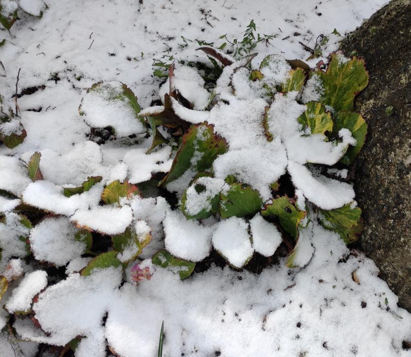Meine Bergenia 'Tubby Andrews' im Schneekleid...