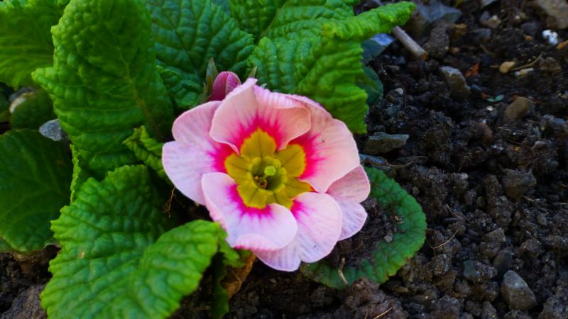 Der Topf mit Primula amoena steht am Abgang zum Keller, dort hat sie es tatsächlich bis zur Blüte geschafft. Mit dauerhafter Kultur hat das allerdings noch nichts zu tun, mal schauen ob das funktioniert. Der Ton der frisch offenen Blüten ist jedenfalls sehr besonders, später dann eine immer noch eine intensive Milkafarbe.