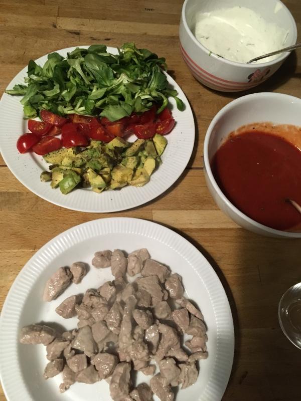 Ich hatte keine große Lust groß zu kochen, deswegen kurz gebratener Schweinslungenbraten (Filet) und Nudeln mit Ratatouille-Fertigsauce aus dem Glas. Das ist das Lieblingssugo meiner Tochter.