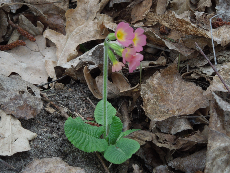 Dieses Primelchen habe ich letztes Jahr aus Samen gezogen, die ich als Primula elatior gekauft hatte. Die anderen Pflanzen blühen auch brav schlüsselblumengelb. Nur dieses eine blüht rosa. Warum? Kann mir jemand erklären, wie es dazu kommt?