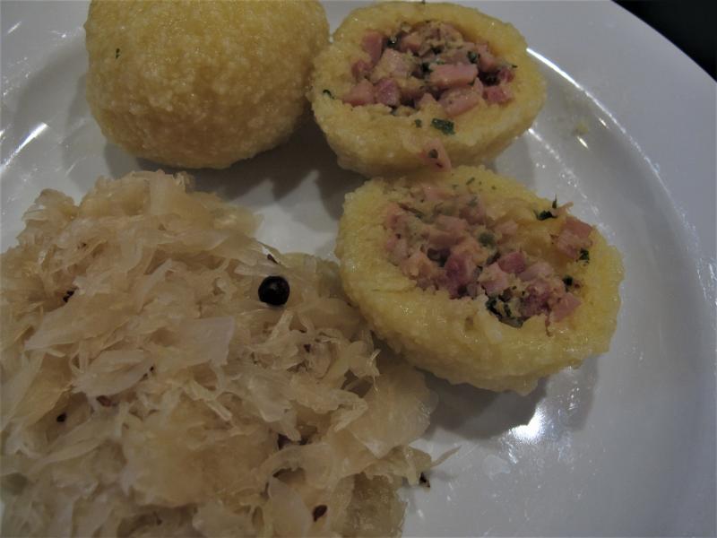 Eigentlich sollte es heute etwas mit ohne Fleisch sein, aber von dem Selchkarree war noch so viel übrig, daß ich draus gefüllte Knödl mit Sauerkraut gemacht habe. Das reichte noch für einen anderen Teil der Familie :)
