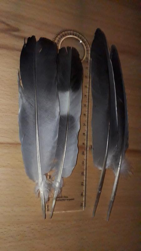 Wem könnten diese knapp 20cm langen Federn gehört haben? Die feineren, kleineren Federn waren alle hellbeige.