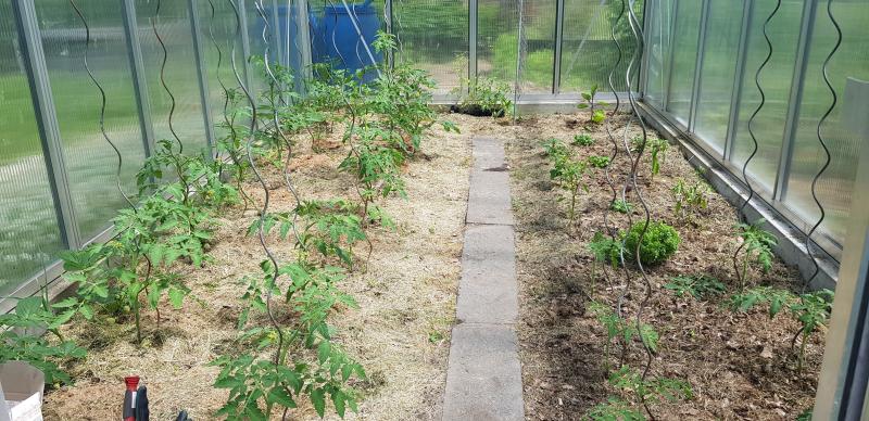 Im Freiland unter dem Tomatendach habe ich noch keine gepflanzt, da warte ich noch ein paar Tage. Ebenso mit Zucchini, Gurken und Bohnen.