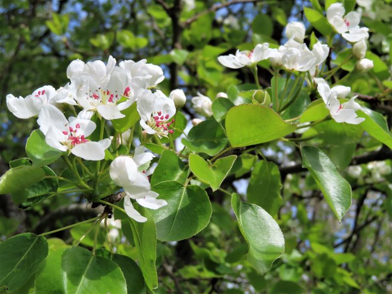 Die Mostbirne im Hntergrund hat auch hübsche Blüten: