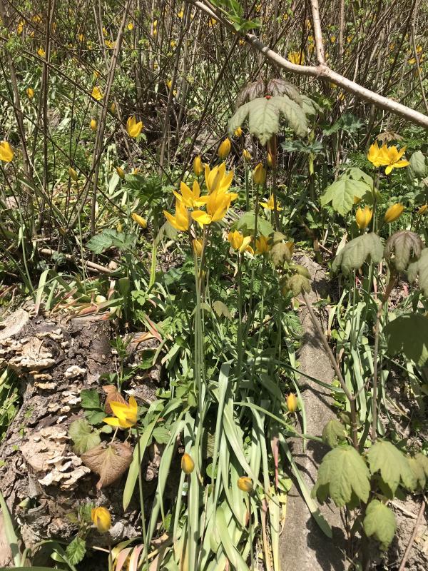 Vor vielen Jahren habe ich vielleicht einen knappen km vom Haus entfernt ein oder zwei Pflanzen des Wiesen-Gelbstern (Gagea pratensis) an einem Wiesenrand entnommen. Dort wurde ein Holzlagerplatz eingerichtet. In den letzten zwei/drei Jahren ist der Bestand im Garten regelrecht explodiert und es gibt offenbar büschelweise Sämlinge. Am ehemaligen Fundort sah ich keine mehr :-\ So ist das Bild aber eigentlich nicht am Originalstandort gemacht...