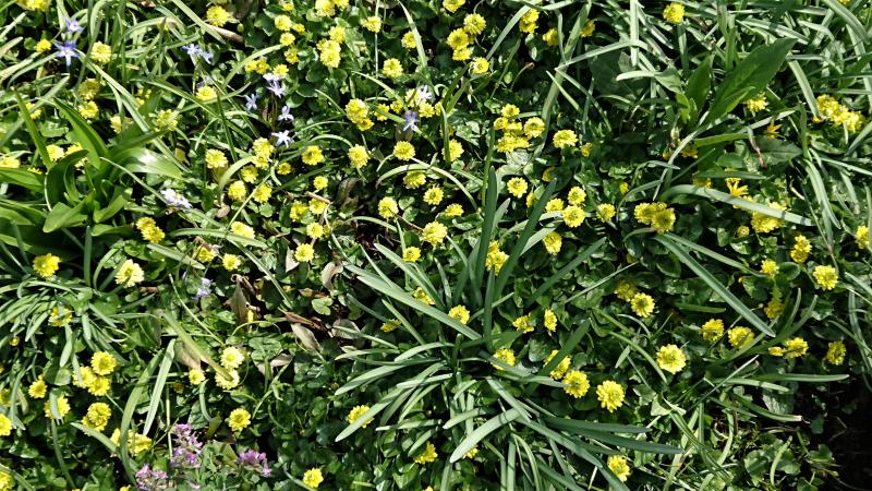 Endlich wieder ein Tag mit Sonne! Und man sieht, wie sich die gefüllten Scharbockskräuter breit gemacht haben. Eigentlich muss man nichts tun als gelegentlich korrigierend eingreifen, getreu dem Motto: