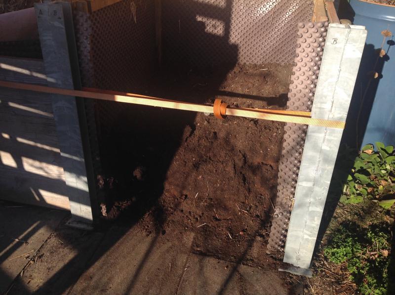 Laupkompost Box B geöffnet, begonnen auszuräumen und sieben.