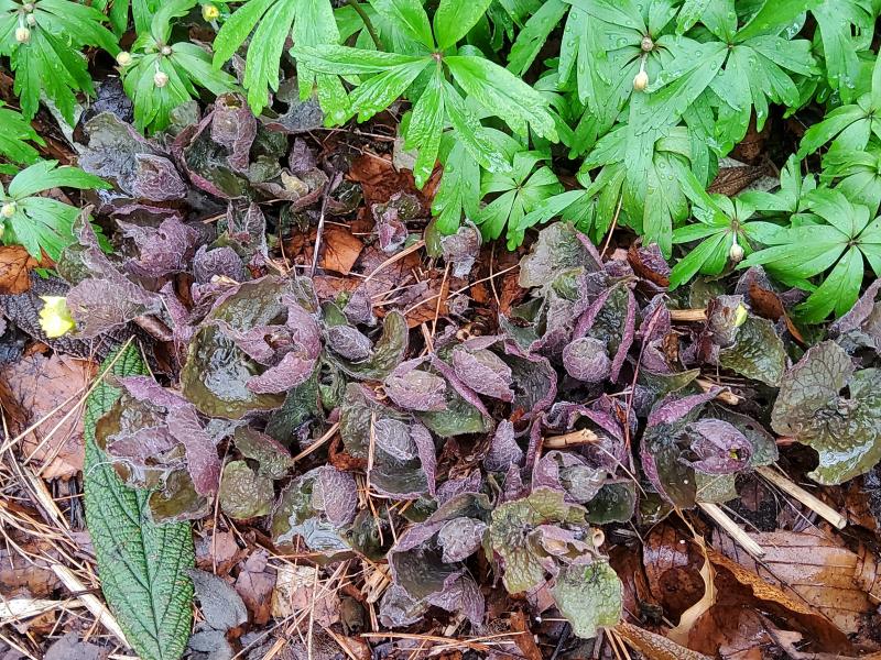 Plagiorhegma dubium (Jeffersonia dubia) braucht noch ein paar Sonnenstrahlen um aufzublühen.