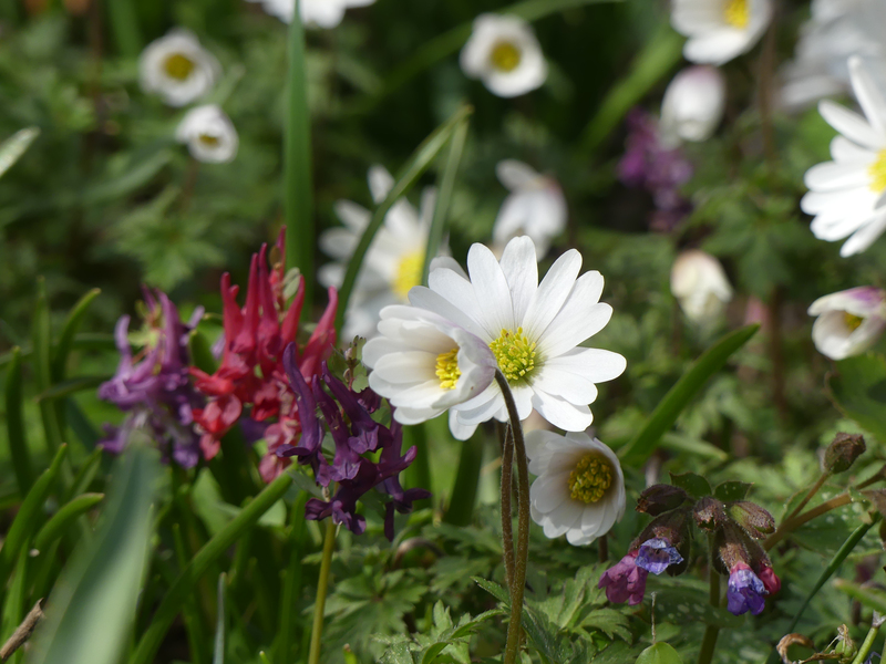 Toll in der größeren Gruppe. 'White Splendour' war lange Jahre bei uns die ausdauerndste blanda-Anemone. Es muss der 2012er Winter gewesen sein, der ihr den Garaus gemacht hat. Ich habe erst im letzten Herbst wieder größere Mangen gesetzt.