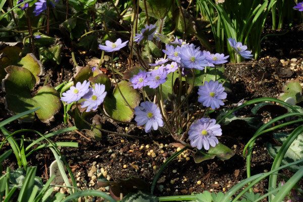 Hier neigt sich die Hepaticasaison dem Ende zu - eines der letzten blühenden Leberblümchen ist bei uns im Garten immer "Milstream Merlin"