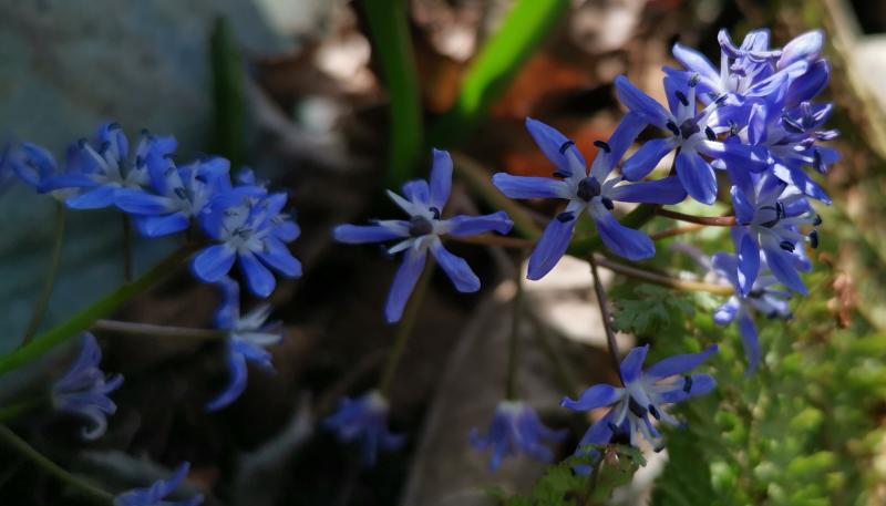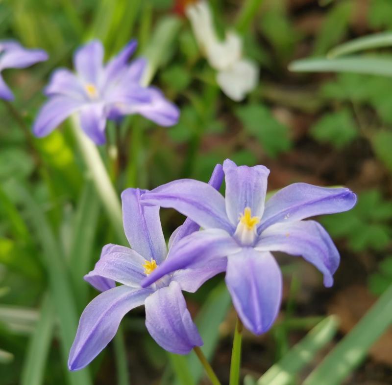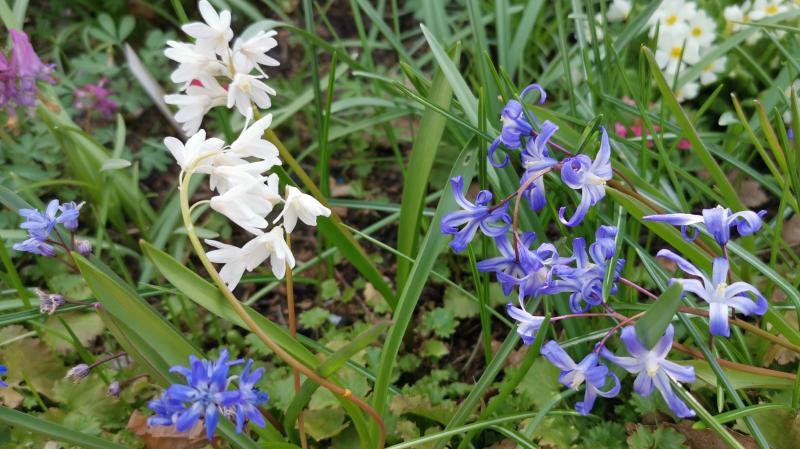 Ich bin gestern bei Sonne durch den Garten gegangen und mein Mann hat ein paar Fotos von den Scillas gemacht. Ich kann sie nicht richtig einordnen, vielleicht sind aber auch schon Hybriden dabei.
