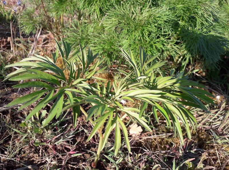sehr schön, auch die Blüte ist schön, Hybrid Fern Leaf Peony 'Merry Mayshine', Saunders / Hollingsworth / Smetana. Eine von diesen unglaublichen einfachblühenden tri oder tetra Hybriden in der Saunders Tradition. Ich kannte die noch nicht, kennte ich sie ich hätte sie schon bestellt. Gießler hat sie - in Vermehrung. :-\