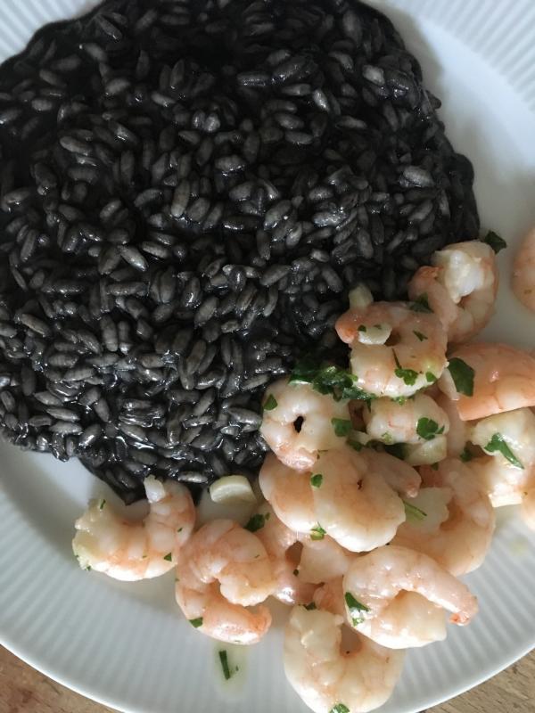 Tintenfisch-Risotto mit Garnelen