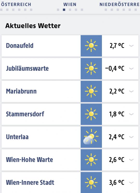 Hat sich bestätigt was unser ORF-Wetterfrosch gesagt hat, wenn man die Messstellen >400m (Jubiläumswarte) nicht berücksichtigt.