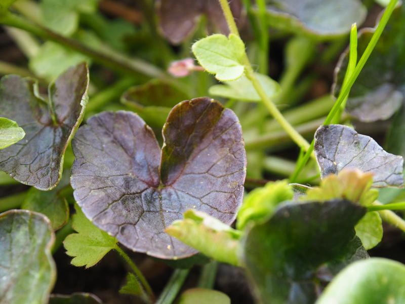 die "Hussy" Sämlinge sind zahlreich. Alle mehr oder weniger dunkel marmoriertes Laub. Sie tauchen in Töpfen auf, dicht am Austrieb von Stauden, sie sind überall.