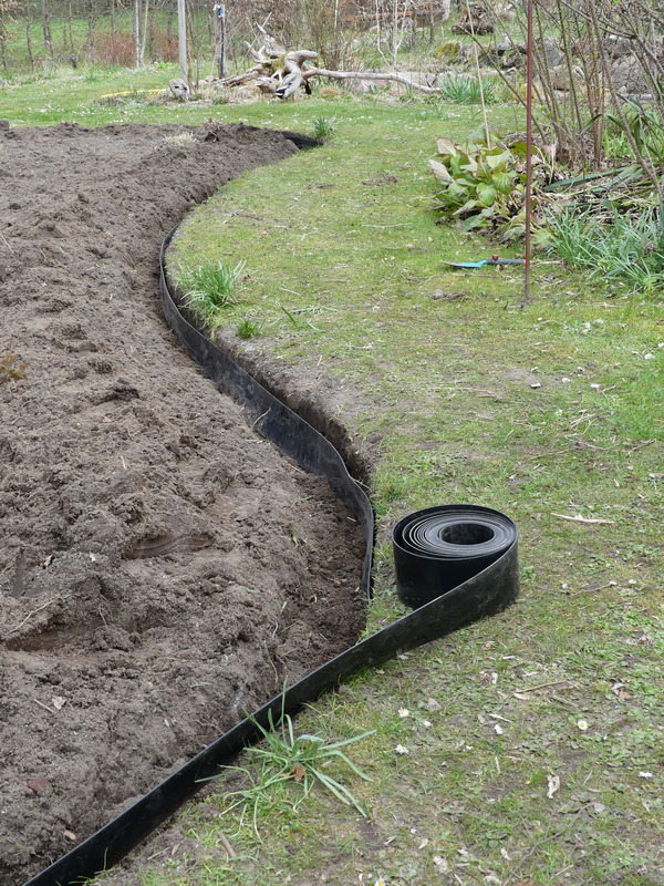 Ich habe erst 50 Tomaten und Chilis getopft, dann die Kübelkinder wieder aus dem Stall geschleppt und letztlich am Staudenbeet weitergemacht. Erst umlaufend einen schmalen Graben für die Beetkante gebuddelt, selbige dann gesetzt, ein paar Eichenpfähle im Beet versenkt und letztlich die ersten Stauden zur Pflanzung im Beet ausgestellt. Morgen wird's dann losgehen mit dem Pflanzen.