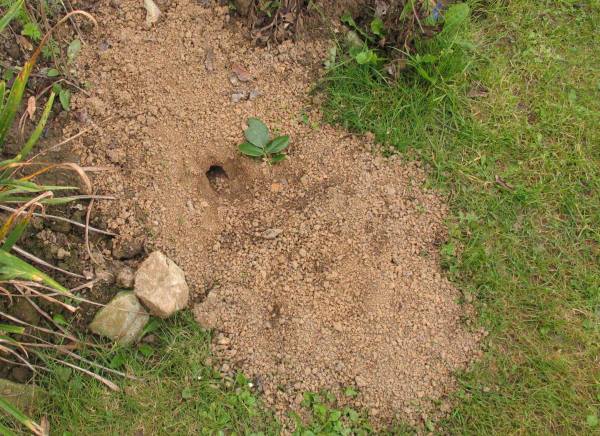 Seit neuestem habe ich einen ziemlich buddelfreudigen Untermieter im Garten, der mit der Erde den halben Weg zuschüttet.Das Beet ist als kleiner Hügel angelegt, das Loch führt ziemlich steil nach unten. Es ist immer offen, und eine Wühlmaus habe ich mir sagen lassen hinterlässt nie ein offenes Loch. Stimmt das?? Wenn ich das Loch mit Erde zuschütte, ist es am nächsten Tag wieder offen. Das Loch ist für eine Feldmaus zu groß, für ein Kaninchen viel zu klein. Einen weiteren Ein-/Ausgang kann ich nicht entdecken, beschädigte und/oder lose Pflanzen bislang auch nicht.Welches Tier kann das sein