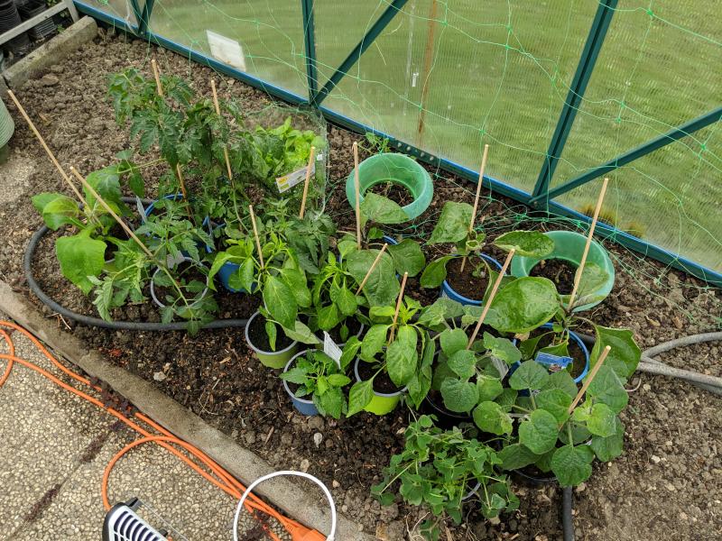 Gekauft haben wir: 4 Tomaten (veredelt), 3 Melanzani (veredelt), 2 Paprika (veredelt), 1 Chilli, 2 Physalis, 1 Yacon, 1 Oca, 1 Knollenziest, 1 Basilikum