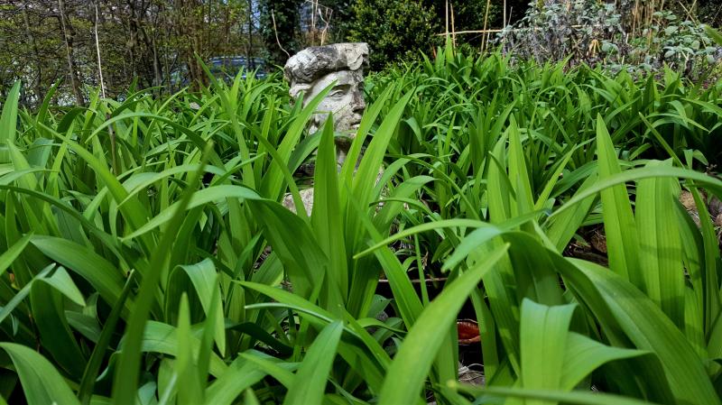Wunderschön blühen auch gerade die Engelstränen-Narzissen 'Thalia' unterm Ahorn, und das üppige Lungenkraut wird eifrig von den Hummeln umschwärmt. An der Trockenmauer blühen gerade die gefüllten Narzissen 'Winston Churchill' vom ALDI, schon interessant, was man mit diesen Mischungen manchmal bekommt. Die kleinen 'Sailboat'-Narzissen weiter oben sind wirklich herzallerliebst, und sie duften wunderbar.