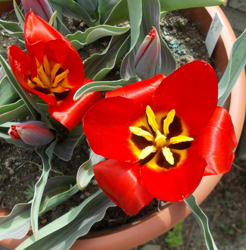 Hier jedenfalls noch ein paar Bilder vom letzten Sonntag, als tatsächlich mal mehr Sonne war und die Anzahl der offenen Arten/Sorten sich schlagartig von 3 auf 6 verdoppelte. Zuerst nochmal T. binutans (da gibt's tatsächlich ein paar nickende Knospen, was Vvedensky als artbestimmendes Merkmal deklariert hatte).