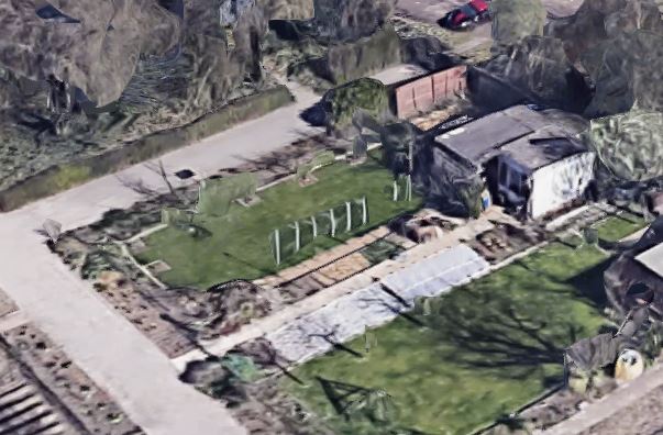 Anbei mal eine Luftaufnahme. Dort wo das Vlies liegt ist das lange Gemüsebeet und gehört auch noch dazu.