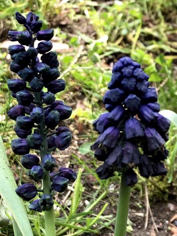 Hier hat der späte Frost viel Schaden angerichtet, Muscari 'Golden Fragrance' wurde unter dem Schnee begraben und kam gar nicht mehr richtig zur Blütenbildung. Ich bin gespannt, ob sie im nächsten Jahr überhaupt wieder erscheinen.