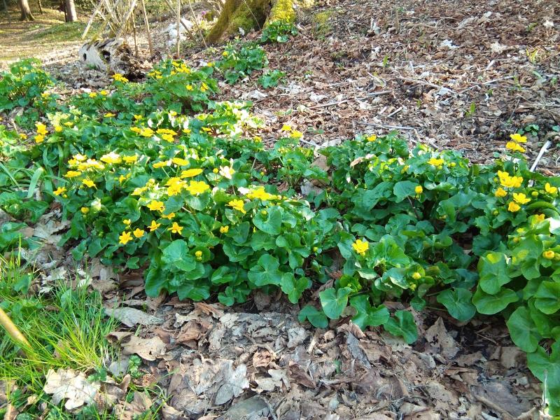 Auch im schattigen Sumfgebiet blühen die Sumpfdotterblumen recht üppig.