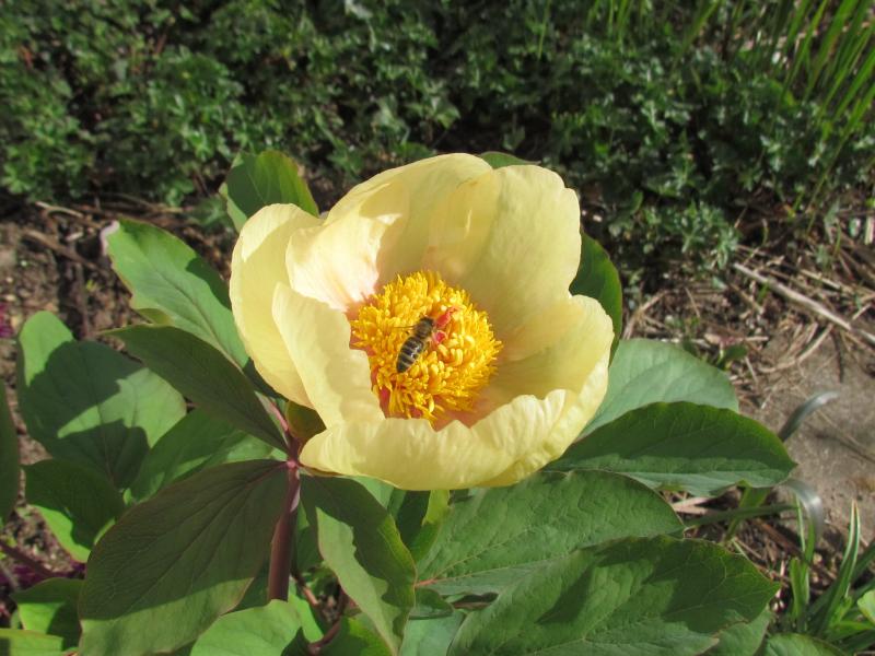 Die mehr oder weniger gelben Mlokosewitschii fangen allmählich an, diese sitzt seit zwanzig Jahren, wurde im Lauf der Zeit riesig, dann vom Schlangenknöterich bedrängt, jetzt hat sie Luft und wird hoffentlich wieder groß. War mal meine Allererste, den Rosastich hat sie immer, damals war ich deswegen enttäuscht, heutzutage gefällt mir das ebenso wie die Reinfarbigen.