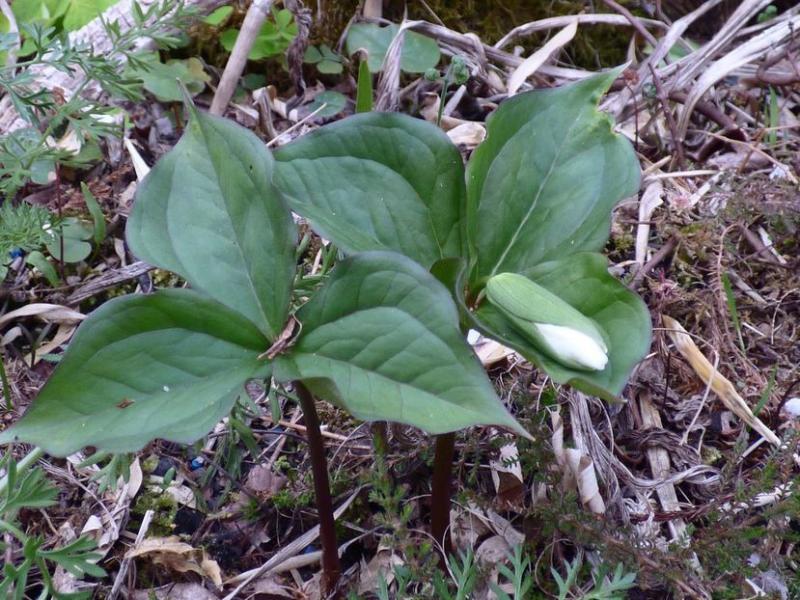 Könnte das Trillium grandiflorum sein, die hier jetzt das zweite Jahr Samen ansetzten?