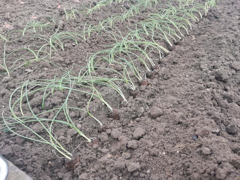 Anschließend im Beet eine Rille ziehen, leicht schräg, und die Pflanzen hineinlegen. Durch das schräge legen fallen sie weniger um. Sind in dem Fall nur 2cm breite Töpfchen, die kippeln mal.